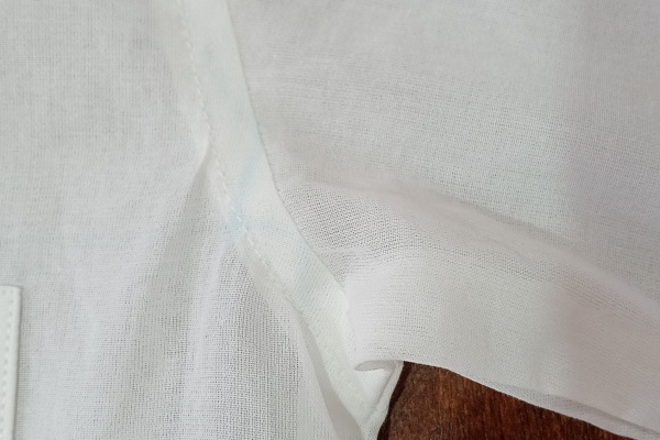 裁断の時にチャコペンという布用のペンで印をつけるのですが、何度洗っても消えない。ワイシャツのあちこちに青いペンのあとが残っている。